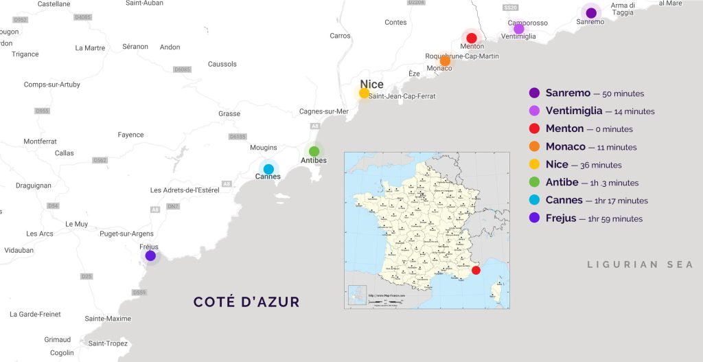 Trains in Côte d’Azur run along the coastline, which means you can enjoy spectacular views of the Mediterranean as you travel. Services on the Marseille-Ventimiglia line run every half an hour until 10 pm during the week. However, on the weekends, not every train will stop at the smaller stations.
