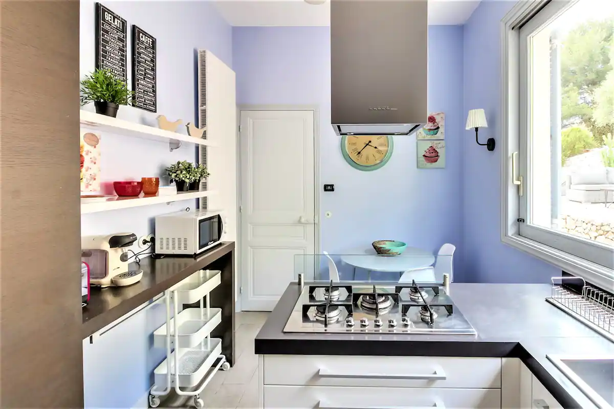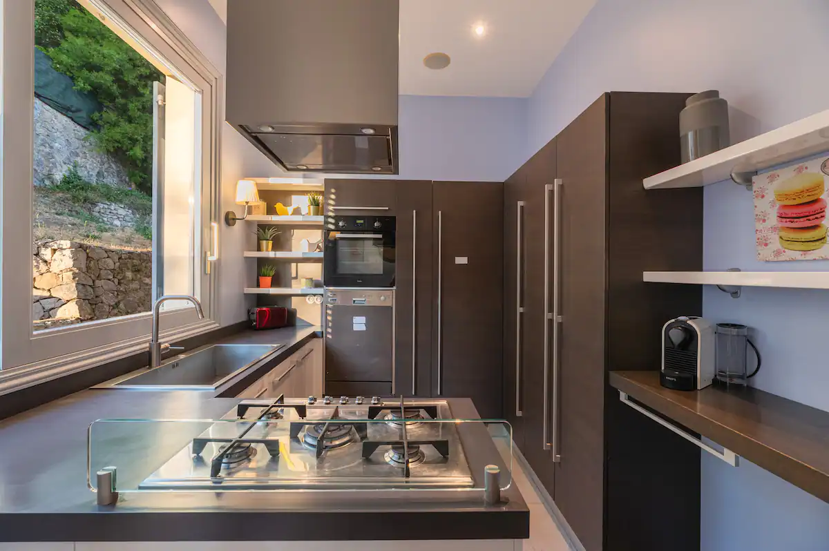 There is also a fully equipped kitchen for all culinary preparations, oven, microwave, refrigerator, gas cooker, toaster, kettle, various coffee makers, including a Nespresso capsule coffee machine, Kenwood robot and blender.